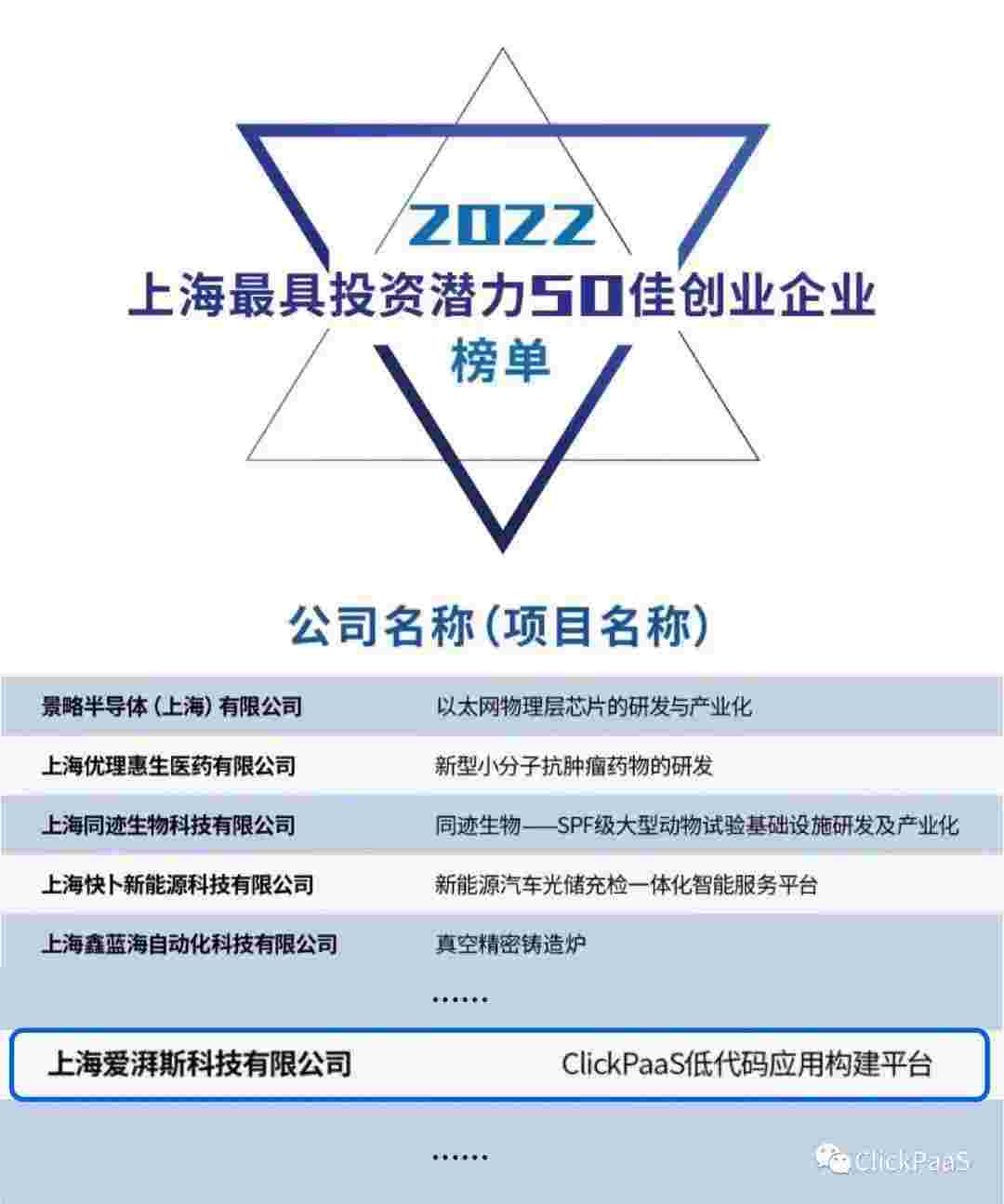 NO钱包 作为国内低代码PaaS平台的领军企业,,与120家创企入围角逐。。。期间接受了来自德同资本、、、领中资本等知名投资机构的10位投资人组成专家评委团的背靠背盲选。。并最终入围“2022上海最具投资潜力50佳创业企业”榜单,,,被列入“上海市重点培育创业企业库”。。