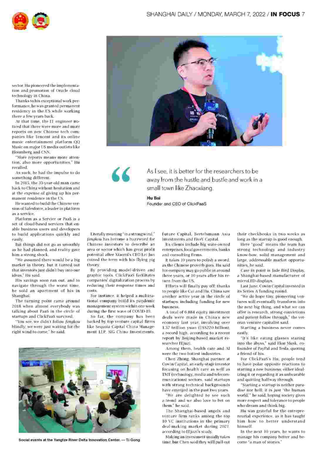 近日,,NO钱包创始人、、、、CEO胡柏接受了《上海日报》采访,,,关于自己当初为何选择创立NO钱包,,,,又为何将公司落户于上海青浦,,分享了其背后的故事。。。